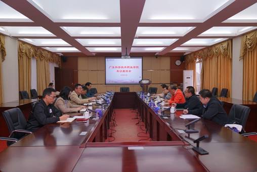 (办公室 报道)3月14日下午,广东科学技术职业学院党委委员、继续教育学院院长、研究员袁晓斌、副院长彭劲松等一行五人莅临我校,就学历教育和非学历教育的相关工作进行深入交流。我校校长刘向阳、副校长吉木斯、林惠琼等对袁晓斌院长一行表示热烈的欢迎。