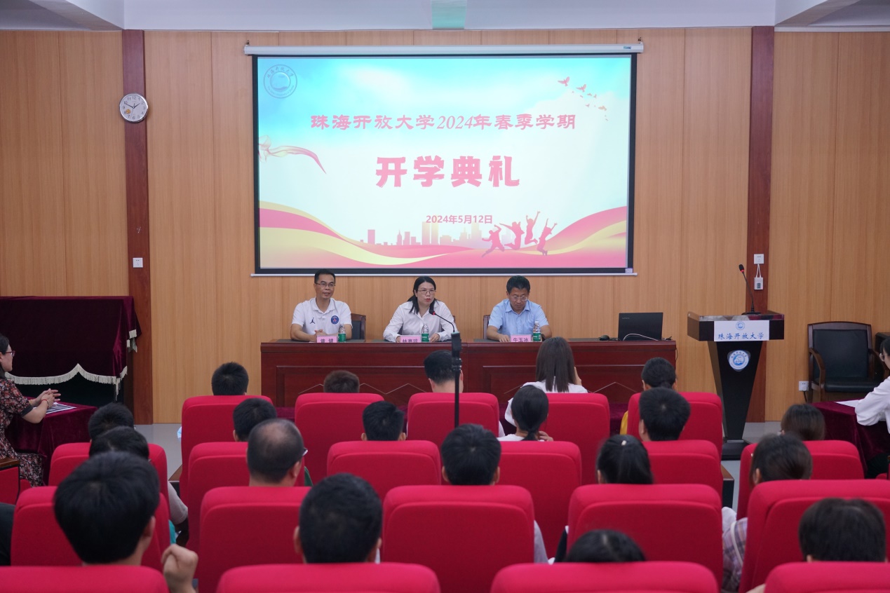 珠海开放大学副校长林惠琼代表学校向2024级新同学表示欢迎和祝贺,介绍了学校总体情况、办学特色、和取得的成就。同时,希望同学们一是走进课堂,尽快转换角色。同学们来自各行各业,在单位、家庭有多重角色尽快调整状态,走进珠海开放大学学有所获。二是提高认识,适应学习。既要积极参加课堂面授,又要线上主动学习,认真完成各科作业。三是协调好各种关系,克服工学矛盾。