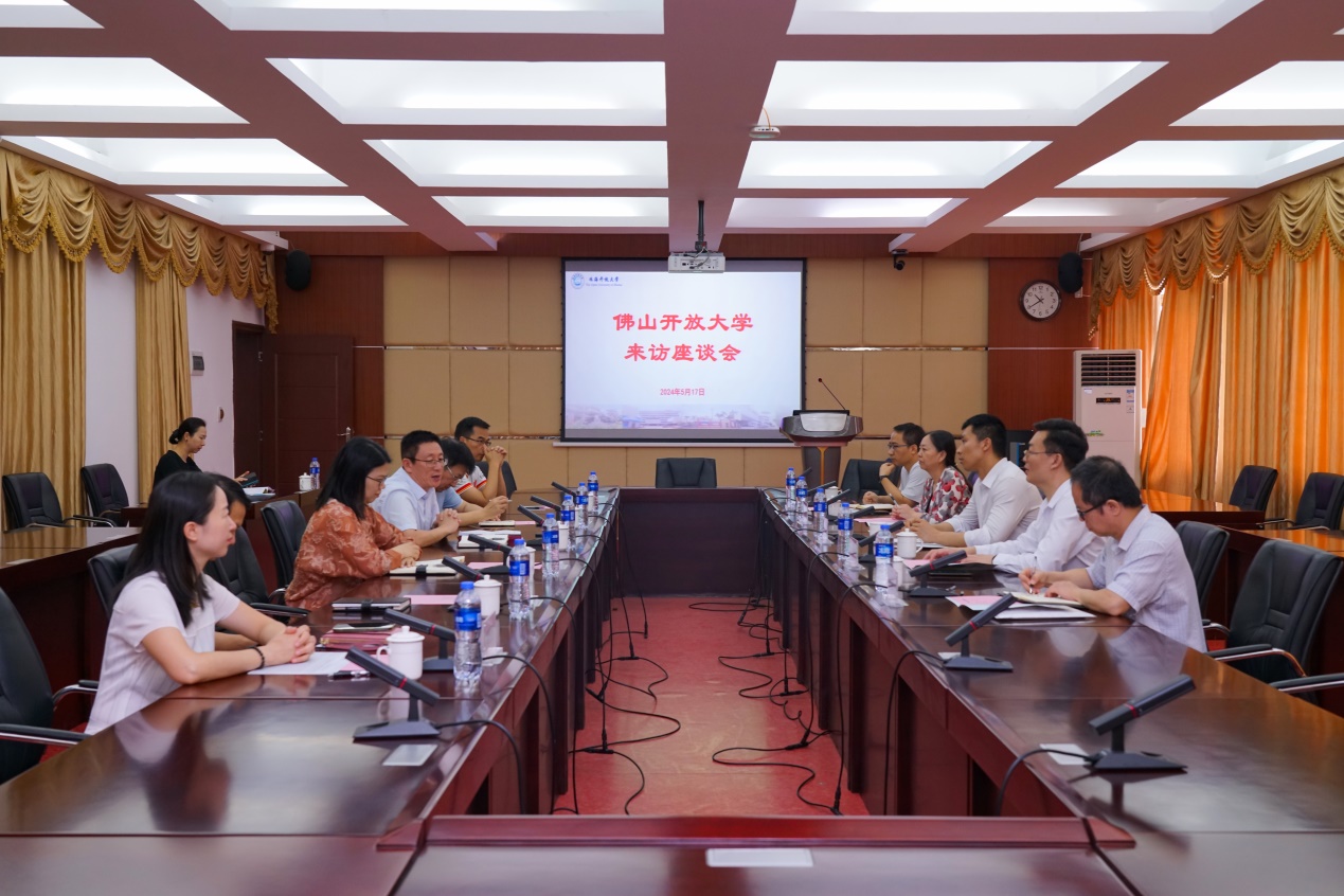 (办公室 报道)5月17日下午,佛山开放大学党委书记苗磊等一行五人莅临我校,就学历教育招生与合作办学、职业培训以及社区教育等相关工作展开深入交流。我校校长刘向阳、副校长吉木斯、副校长林惠琼等领导热情接待了来访嘉宾。