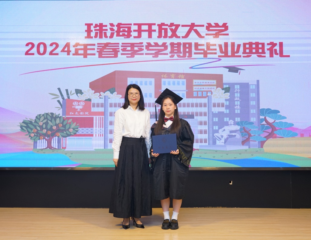 在毕业证颁发环节,林惠琼为所有毕业生一一颁发毕业证书并合影留念。