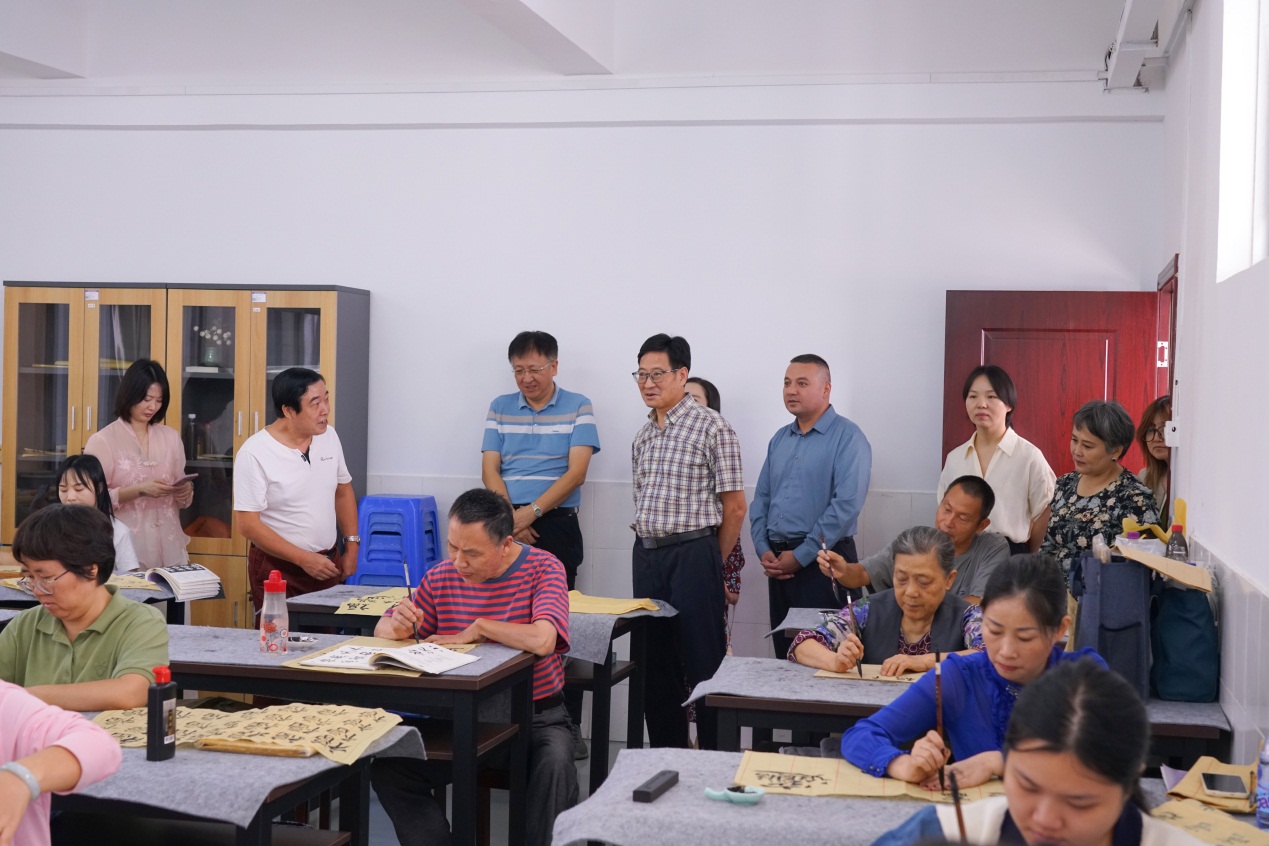 我校校领导对来访嘉宾表示热烈的欢迎,陪同客人参观了学校的党员活动室、社区教育以及老年教育教学场所。在座谈交流中,刘会全副校长详细介绍了我校在学历教育招生与教学、非学历培训、社区教育、老年教育等多方面的具体情况,充分展示了我校多元化和特色化办学成果。