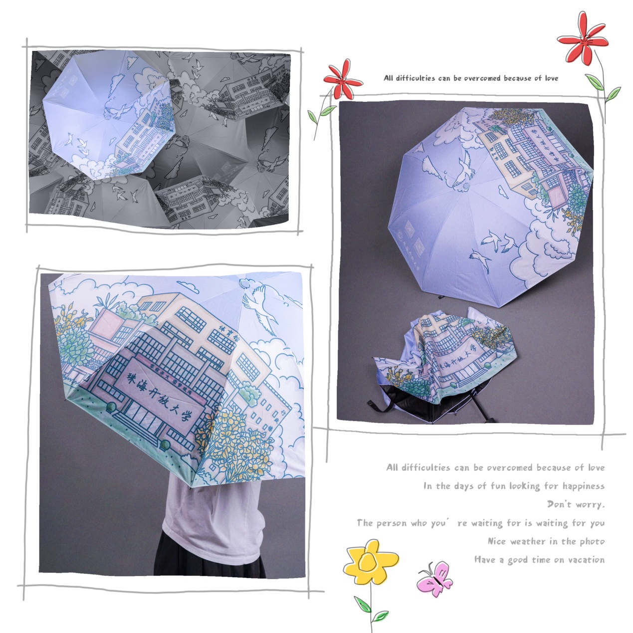 1.伞面定制校园主体建筑图案,线条流畅,色彩斑斓,宛如一幅流动的校园风情画。