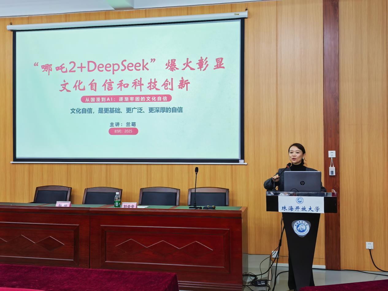 典礼结束后,华侨大学继续教育学院教学部兰萌主任以“哪吒2+DeepSeek爆火彰显文化自信和科技创新——从国漫到AI:逐渐牢固的文化自信”为主题为新生开展思政第一课。兰主任通过剖析国漫与AI领域的典型案例,引导学生深刻理解文化自信与科技创新的重要性,激发同学们的民族自豪感和创新精神。