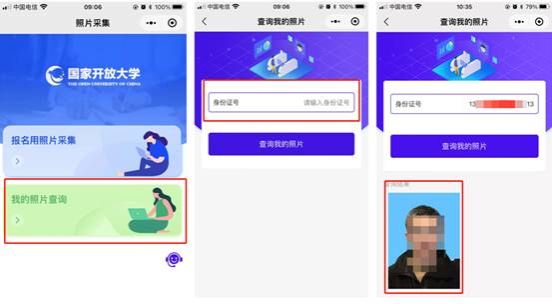 点击【我的照片查询】大卡片可进入到查询照片页面中,在此页面需要输入自己的证件号并点击【查询我的照片】按钮,就可查询自己的历史照片信息,如果有多次报名的话,有可能会有多张照片。