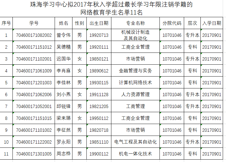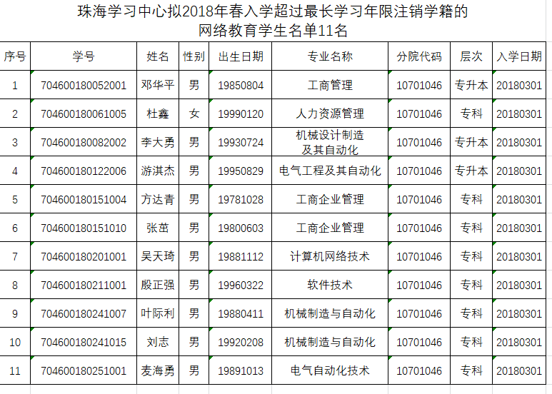 2.《珠海学习中心拟2018年春入学超过最长学习年限注销学籍网络教育学生名单》